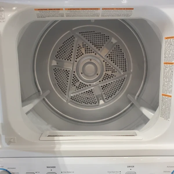 Frigidaire Electric Long Vent Stacked Laundry Center – 3.9 Cu. Ft Washer and 5.5 Cu. Ft. Dryer 4SD480 – FLCE7523AW – Scratch & Dent (Minor)