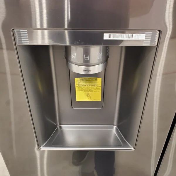 LG 26 cu. ft. Smart Counter-Depth MAX French Door Refrigerator with 4 types of ice in PrintProof Black Stainless Steel – 3SD700 – LRYXC2606S- Scratch & Dent (Minor